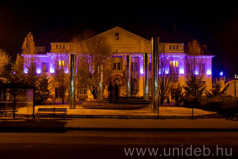 A koraszülöttek világnapja alkalmából lila színbe öltözött a Debreceni Egyetem több épülete